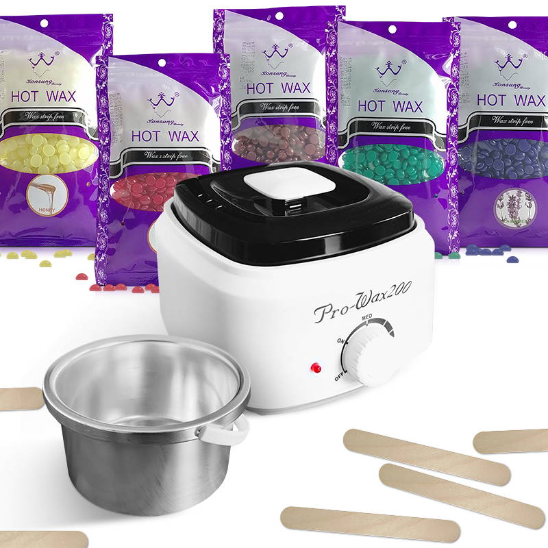 Podgrzewacz wosku w puszce+wosk 5 x 100g+ szpatuła 100 szt.